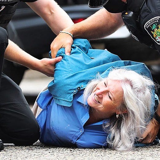 New Deputy Speaker BILL WALKER, PCs BOB BAILEY and JIM MCDONELL having post-Throne Speech brunch in the basement cafeteria…A big nurses protest…and an anti-vax crasher: